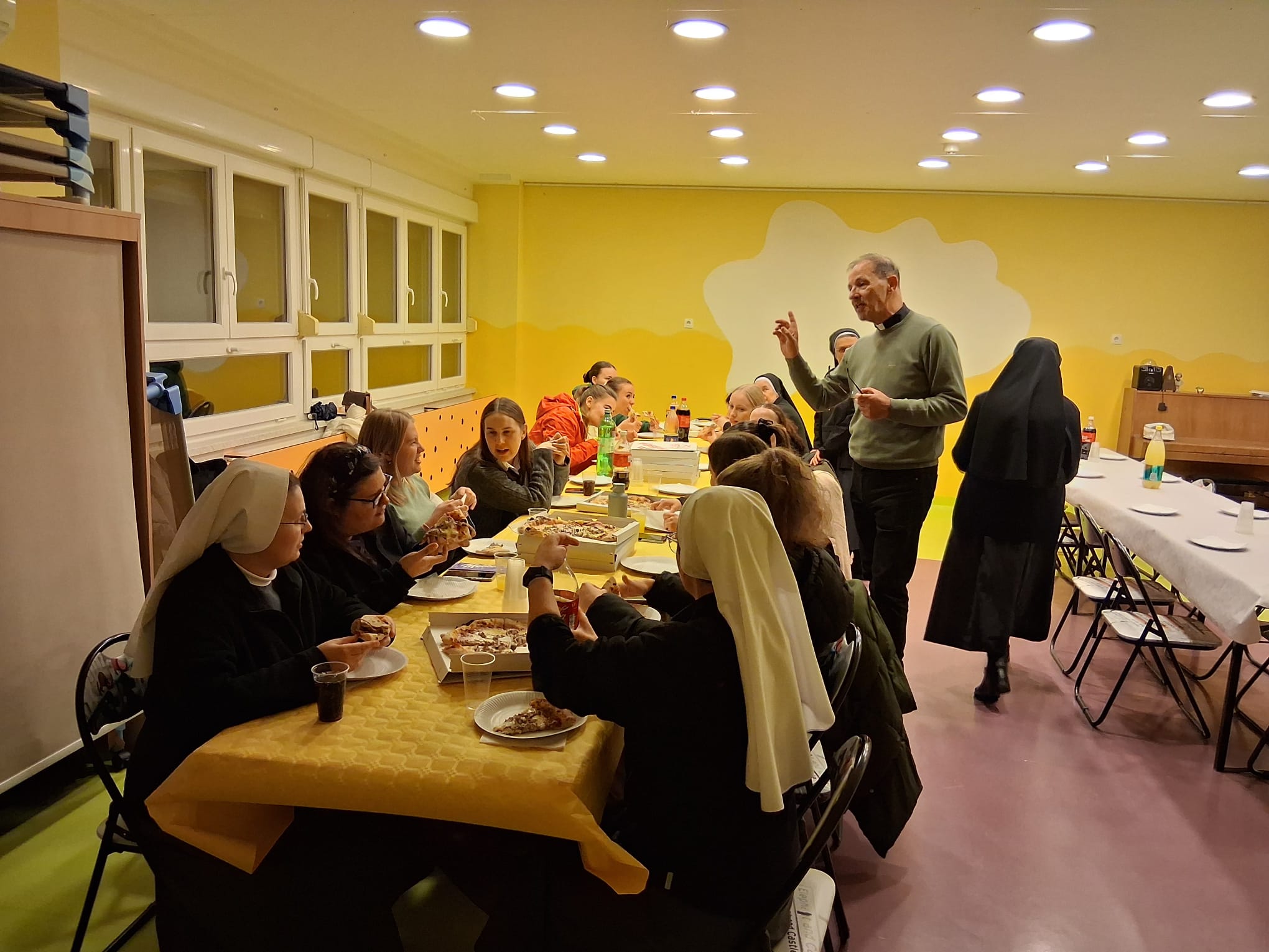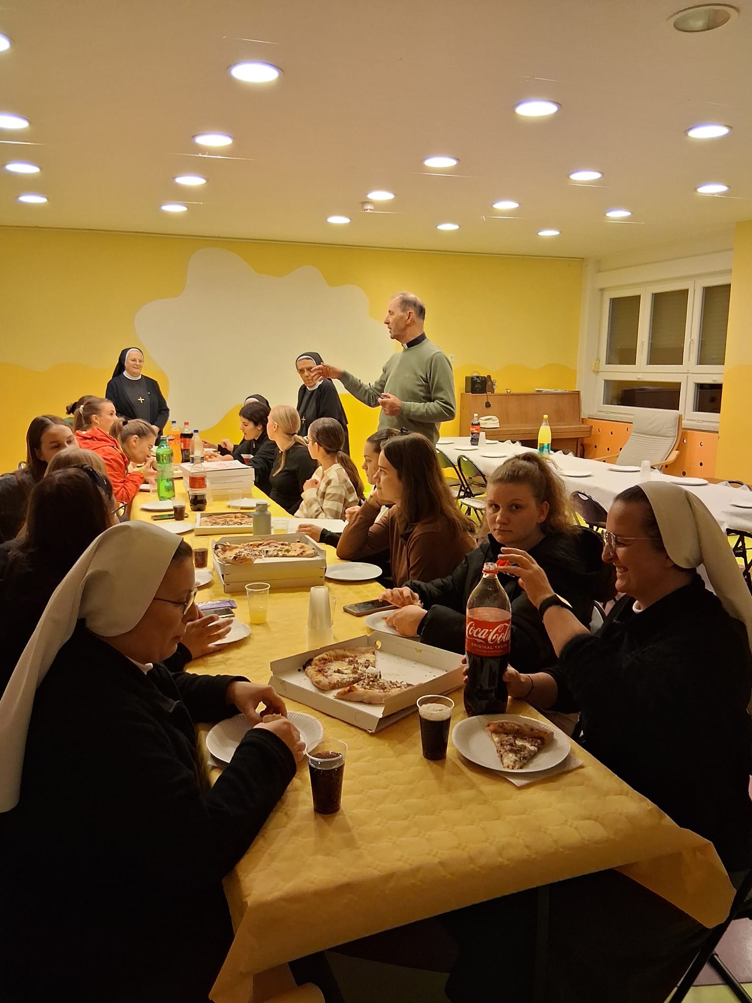 U četvrtak 20.11. 2025. smo, u zajedništvu sa studenticama koje žive kod nas, obilježile blagdan sv. Elizabete Ugarske, zaštitnice franjevačkog reda, kao i zaštitnice jednog od naša dva doma za studentice. Program je započeo svečanim klanjanjem pred Presvetim, predvođenim prof. Antonom Tamarutom te sviranjem i pjevanjem studentica. U atmosferi tišine i molitve, studentice su imale priliku predati svoje molitve i nakane te produbiti osobni odnos s Bogom.